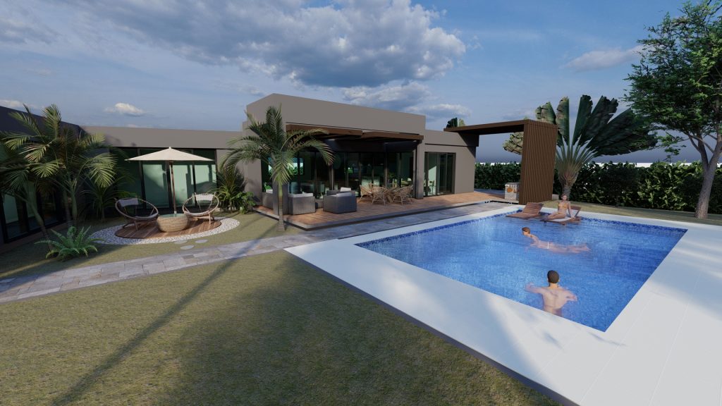 Además, el proyecto incluye áreas sociales que complementan la experiencia residencial, tales como una terraza, zona de BBQ, piscina, amplia zona de parqueo, y una generosa área verde de más de 1 hectárea. Para finalizar, se integra un jardín Zen, ubicado estratégicamente junto a la biblioteca y la habitación principal, aportando tranquilidad y conexión con la naturaleza.